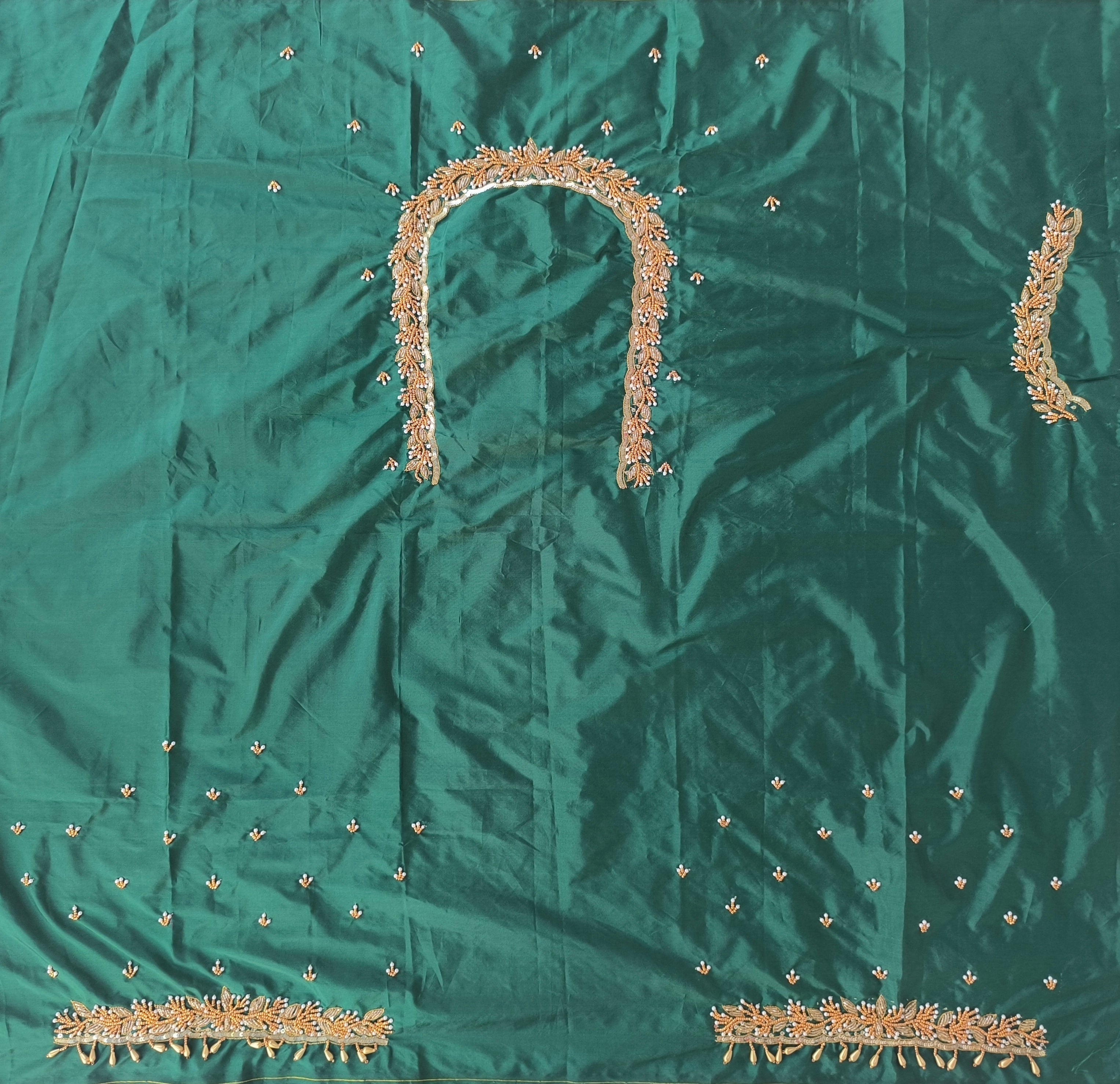 Bottle Gren Colour Maggam Work Blouse 1 MTR SILK  COTTON CLOTHBottle Green ColorMaggam Work BlouseNECK DEEP 10...