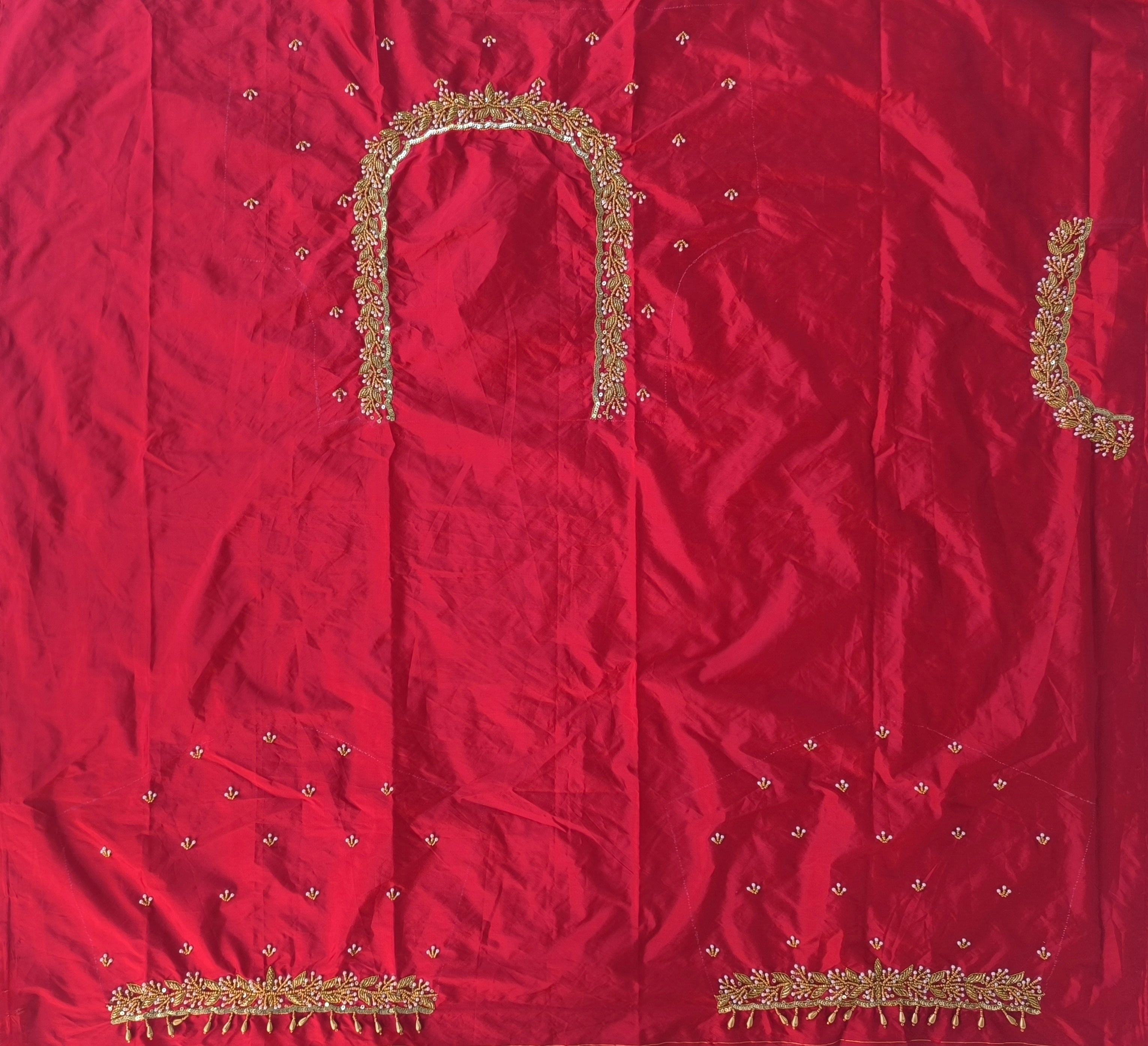 Red Colour Maggam Work Blouse 1 MTR SILK  COTTON CLOTHRed ColorMaggam Work BlouseNECK DEEP 10 TO 11...