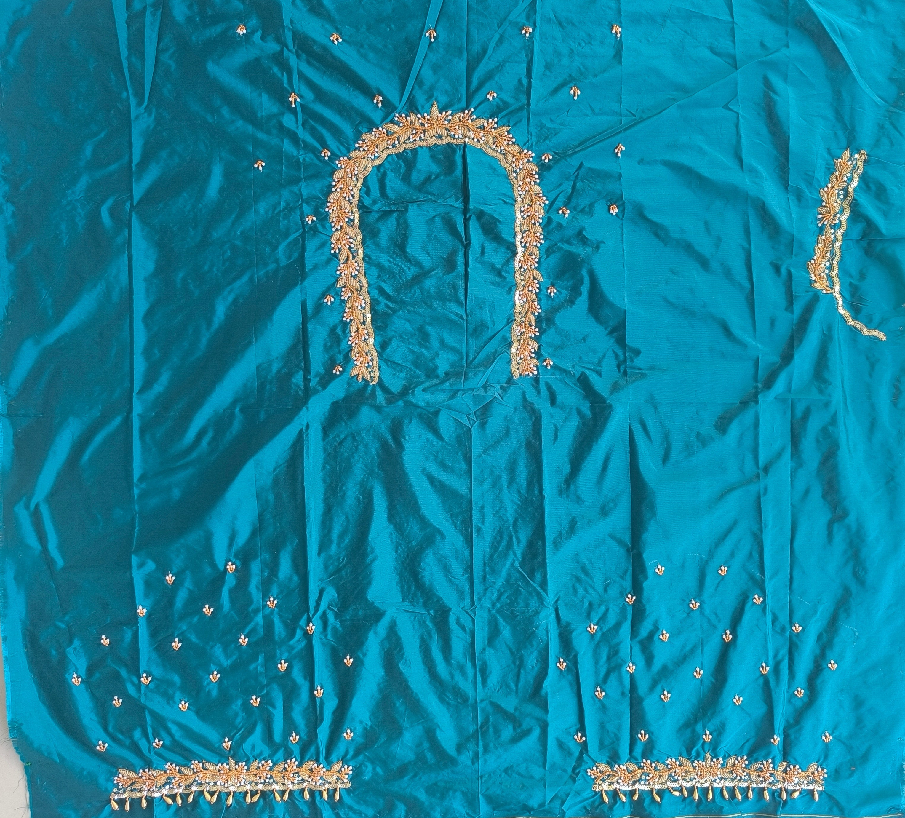 Rama Green Colour Maggam Work Blouse 1 MTR SILK  COTTON CLOTHRama Green ColorMaggam Work BlouseNECK DEEP 10...