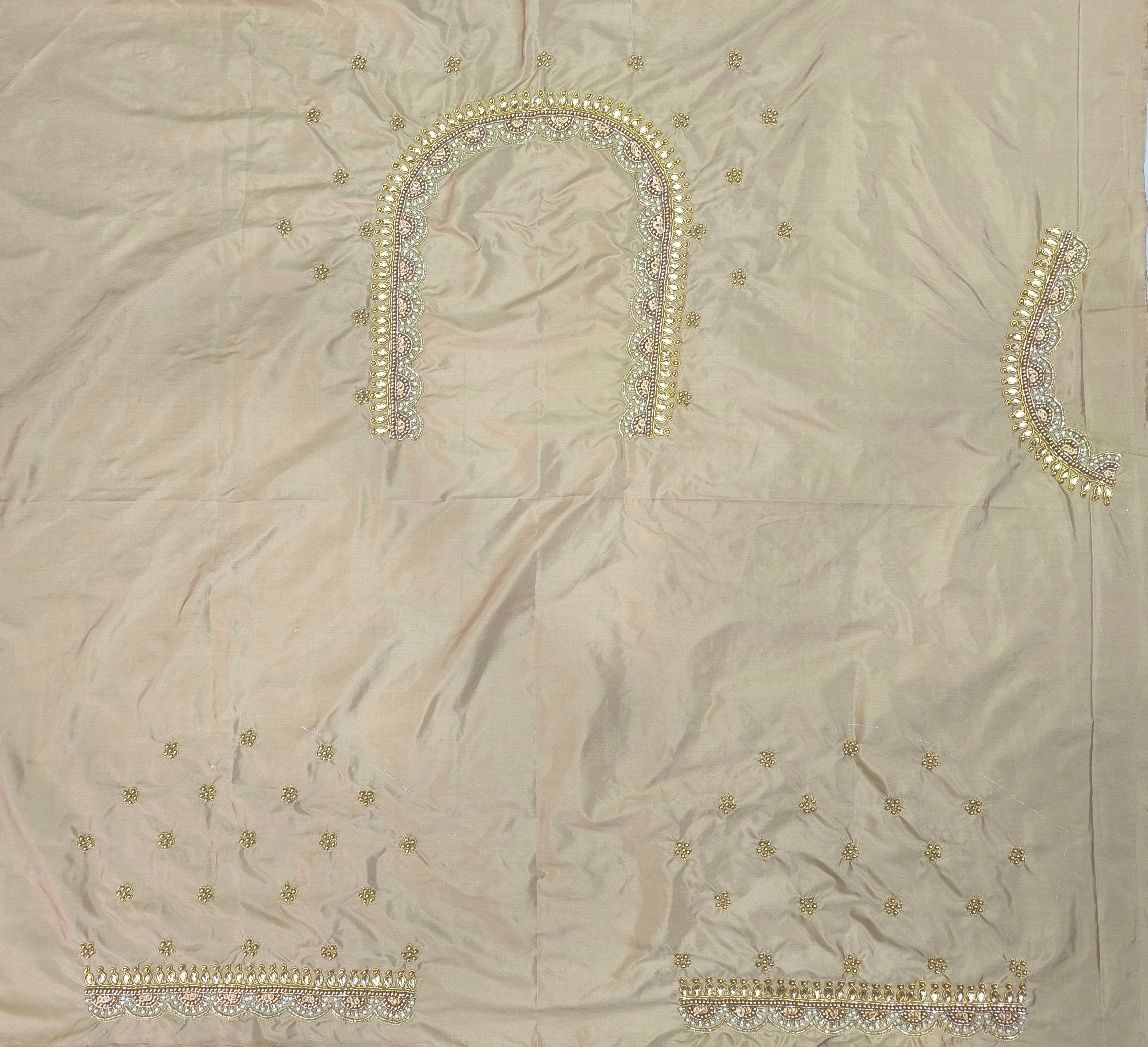Gold Colour Maggam Work Blouse 1 MTR SILK  COTTON CLOTHGold ColorMaggam Work BlouseNECK DEEP 10 TO 11...