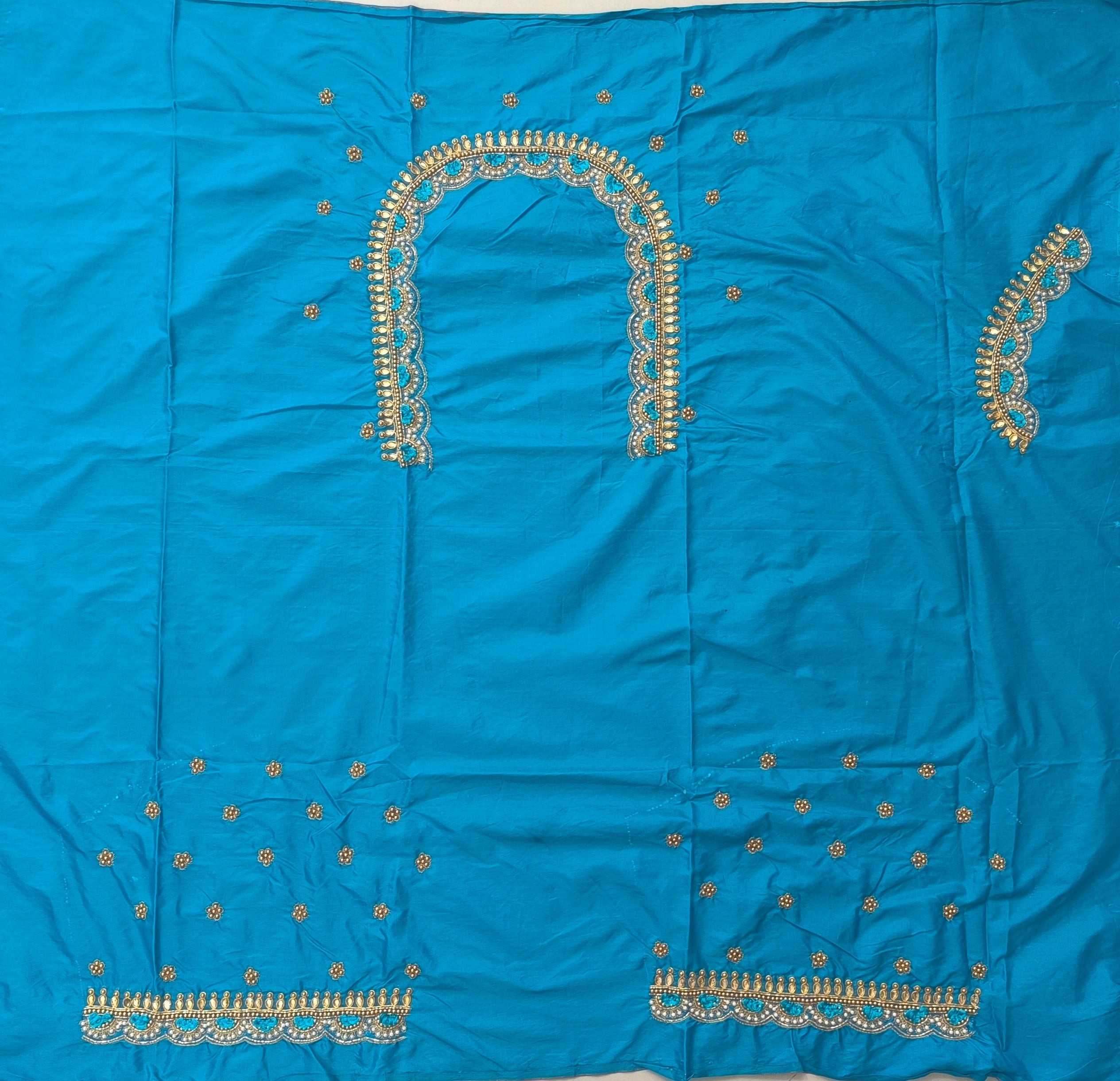 Sky Blue Colour Maggam Work Blouse 1 MTR SILK  COTTON CLOTHMaggam Work BlouseNECK DEEP 10 TO 11...