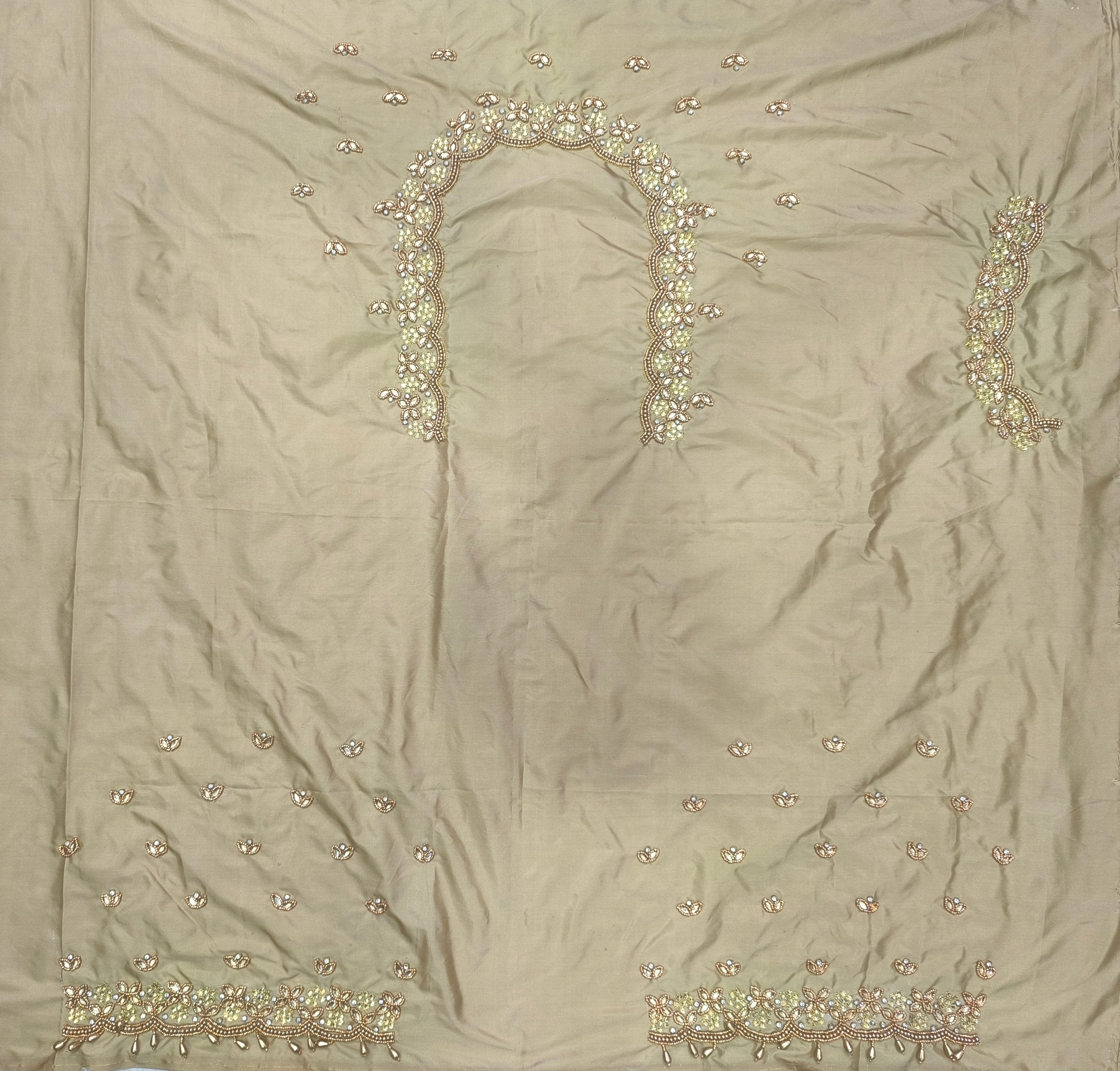 Gold Colour Maggam Work Blouse 1 MTR SILK  COTTON CLOTHGold ColorMaggam Work BlouseNECK DEEP 10 TO 11...