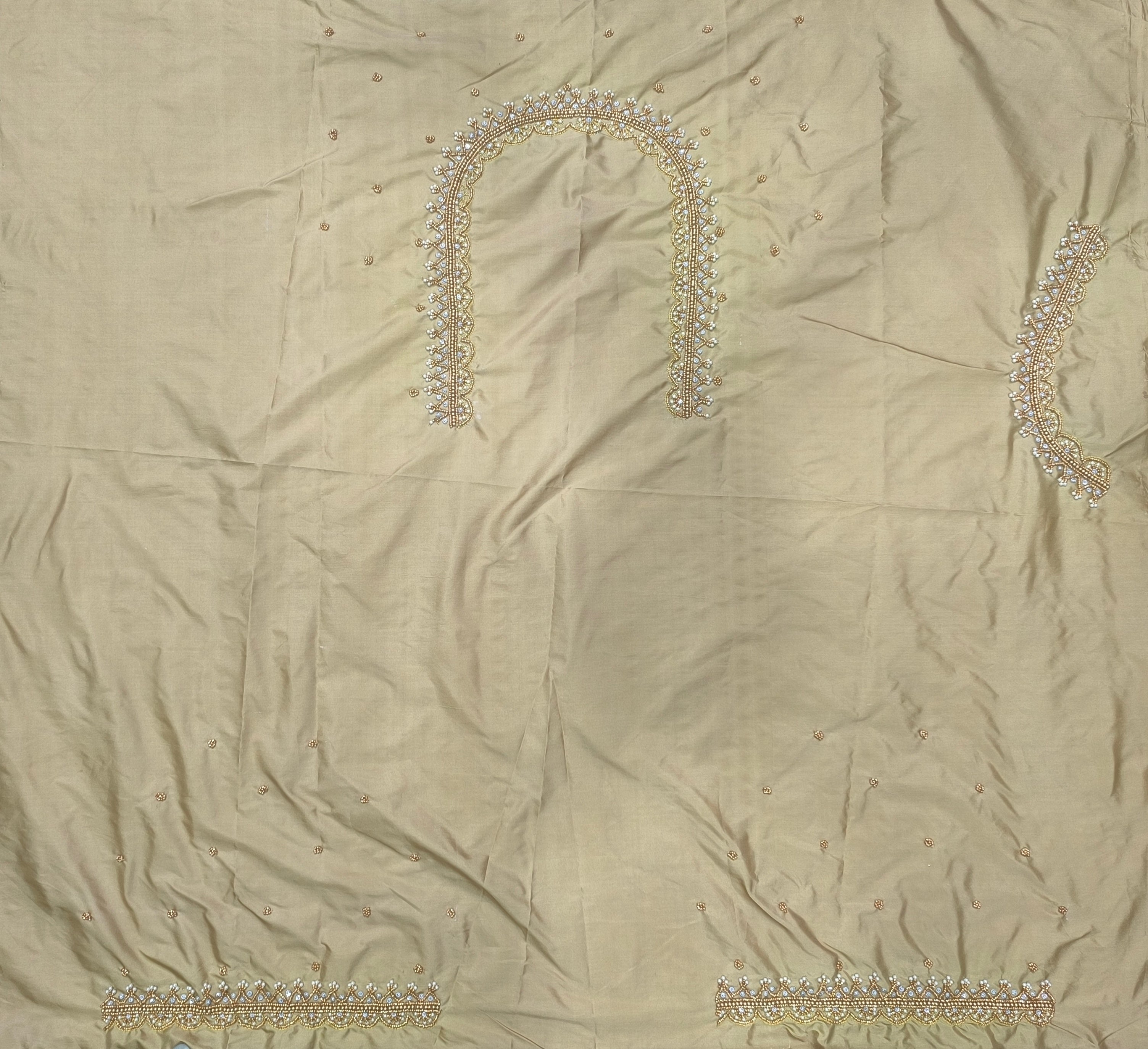 Gold Colour Maggam Work Blouse 1 MTR SILK  COTTON CLOTHGold ColorMaggam Work BlouseNECK DEEP 10 TO 11...