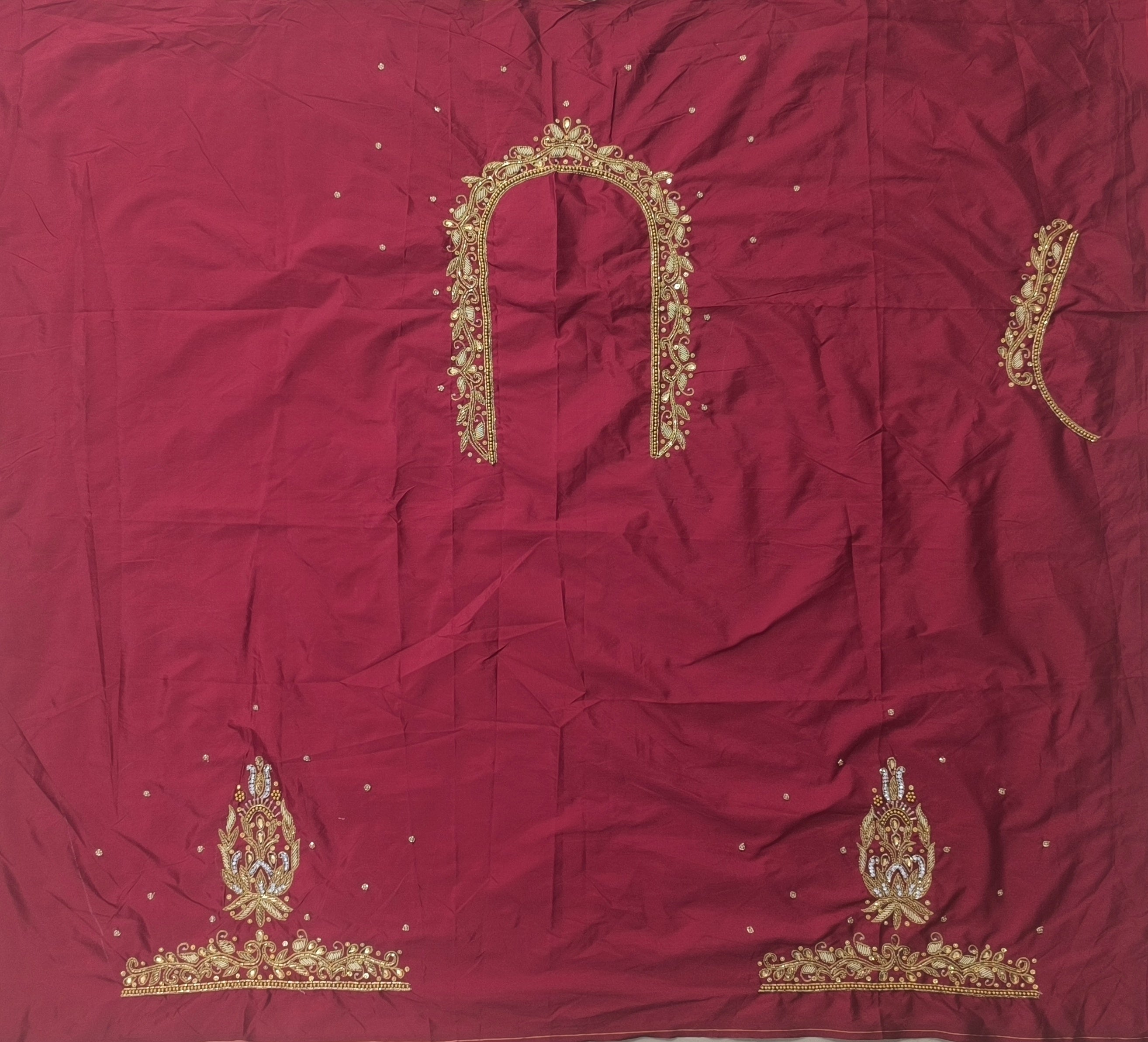 Maroon Colour Maggam Work Blouse 1 MTR SILK  COTTON CLOTHMaggam Work BlouseNECK DEEP 10 TO 11 INCHES...