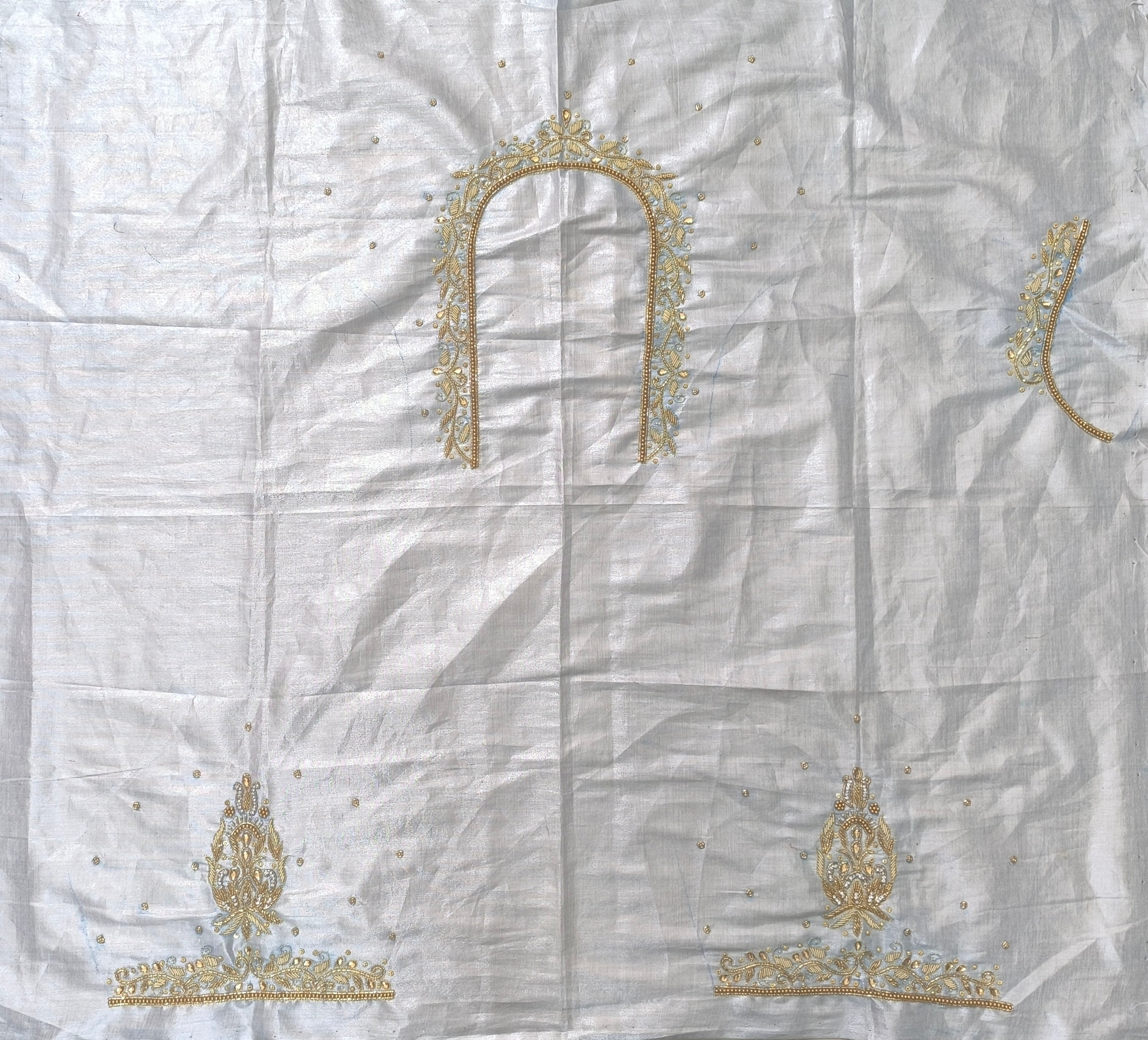 Silver Tissue  Colour Maggam Work Blouse 1 MTR SILK  COTTON CLOTHMaggam Work BlouseNECK DEEP 10 TO 11...
