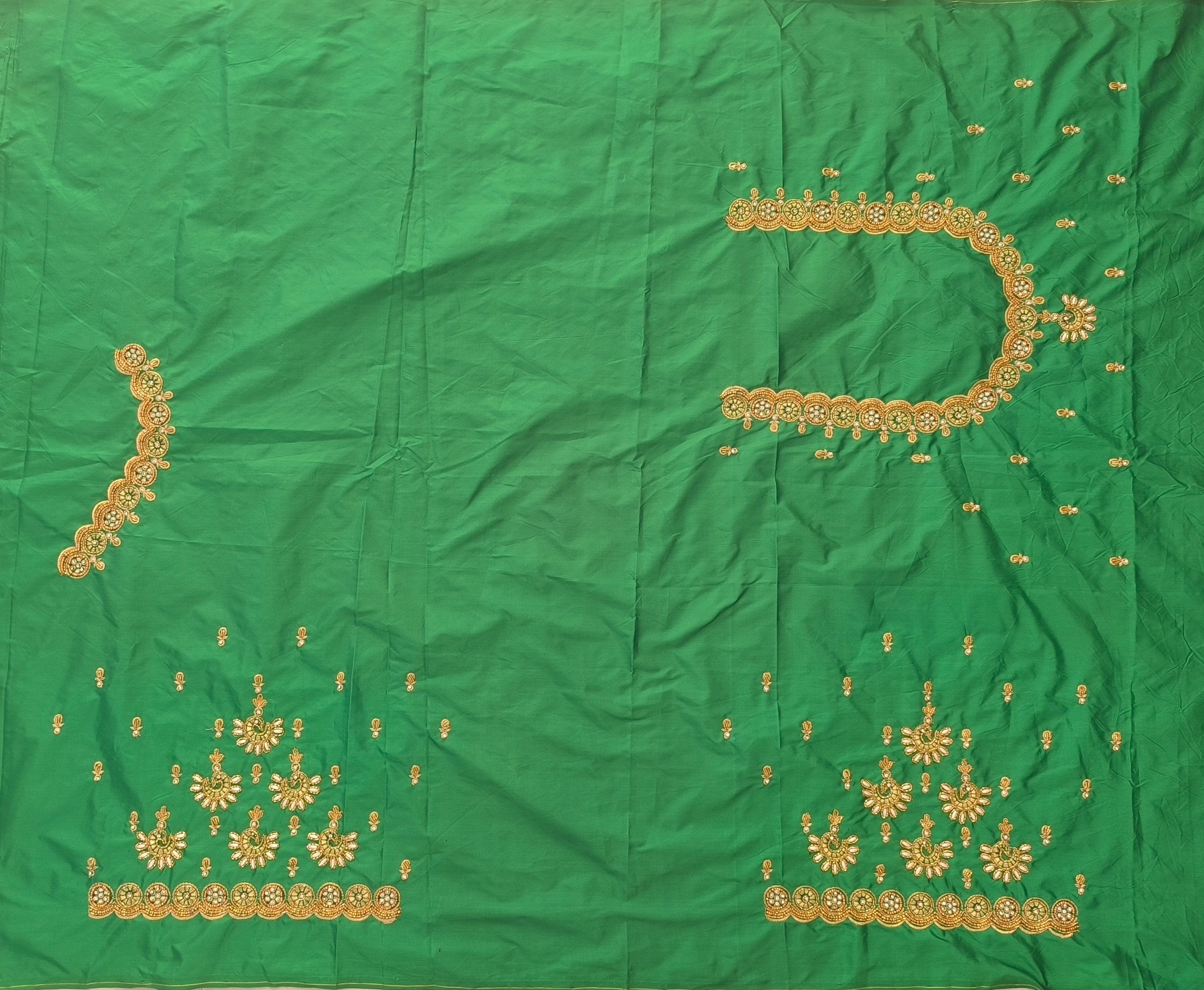 Green Colour Computer Maggam Work Blouse 1  MTR SILK  COTTON CLOTHComputer Maggam Work BlouseNECK DEEP 10 TO...