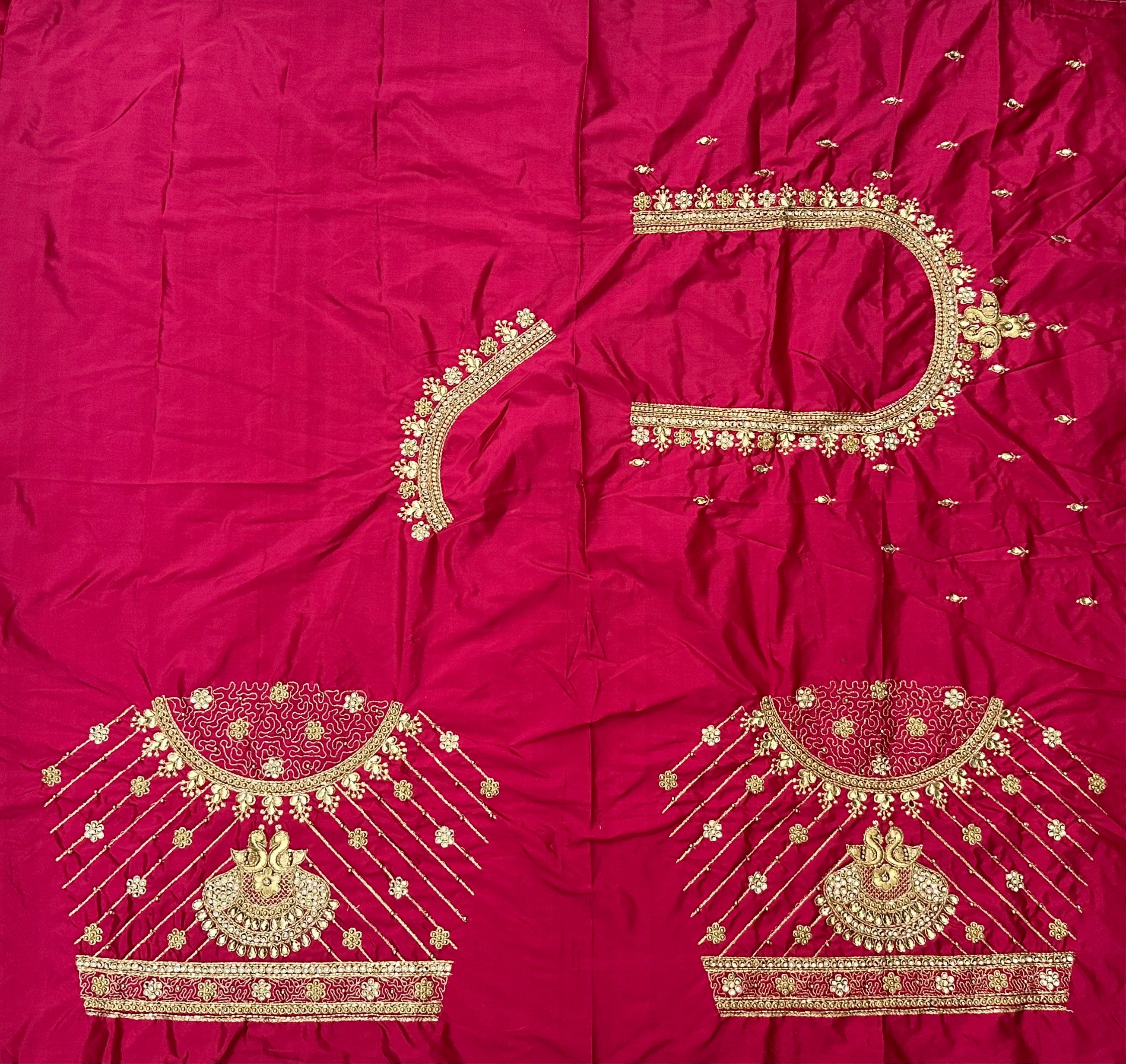 NR851TP - Tomato Pink Colour Computer Maggam Work Blouse