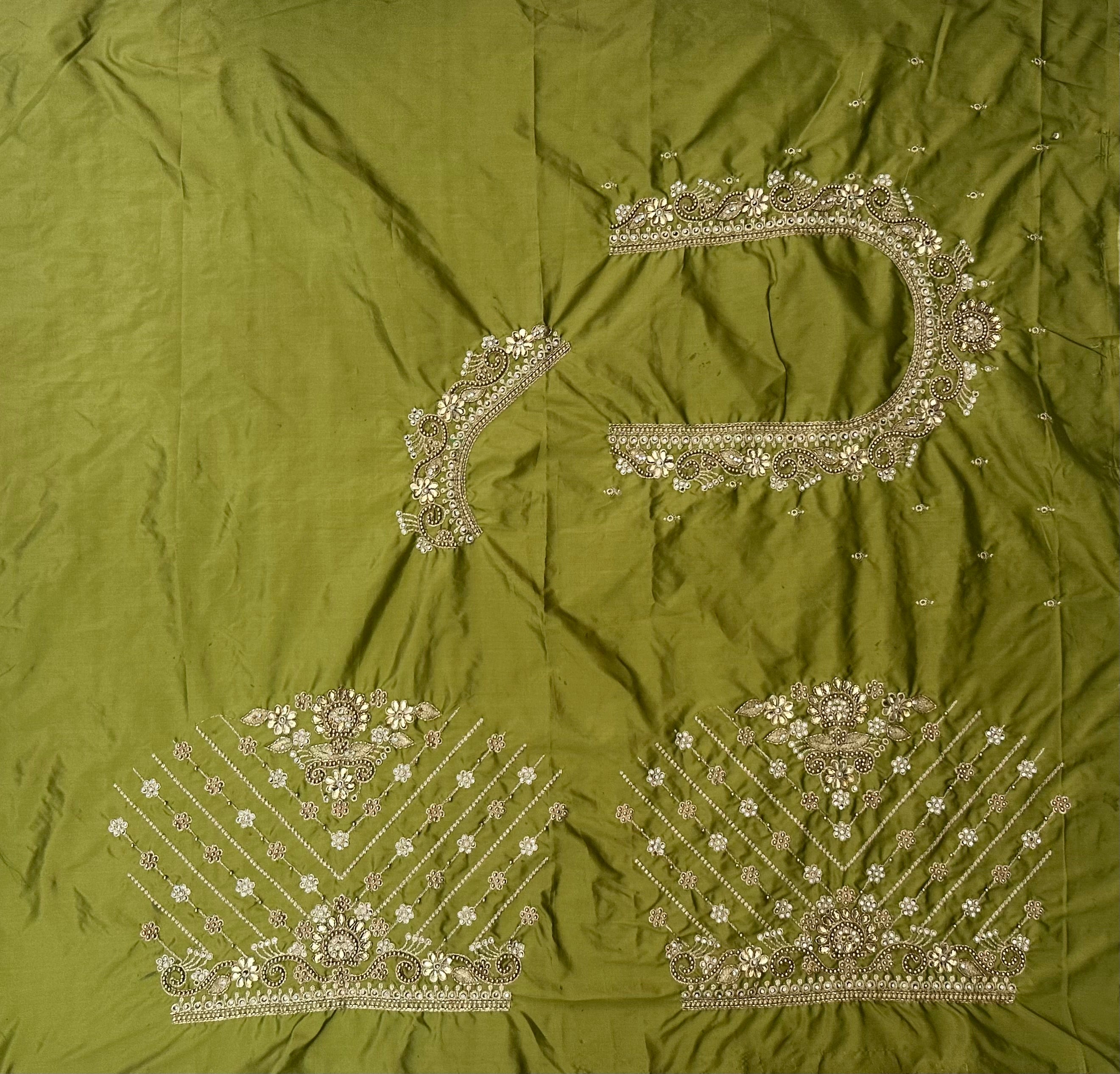 Mahendi Colour Computer Maggam Work Blouse 1 MTR SILK  COTTON CLOTHComputer Maggam Work BlouseNECK DEEP 10 TO...