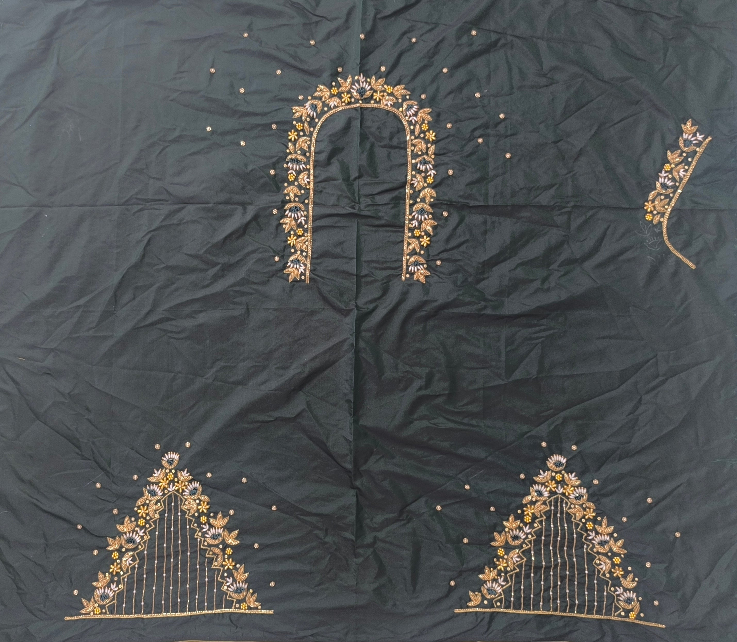 Bottle Green Colour Maggam Work Blouse 1 MTR SILK  COTTON CLOTHMaggam Work BlouseNECK DEEP 10 TO 11...