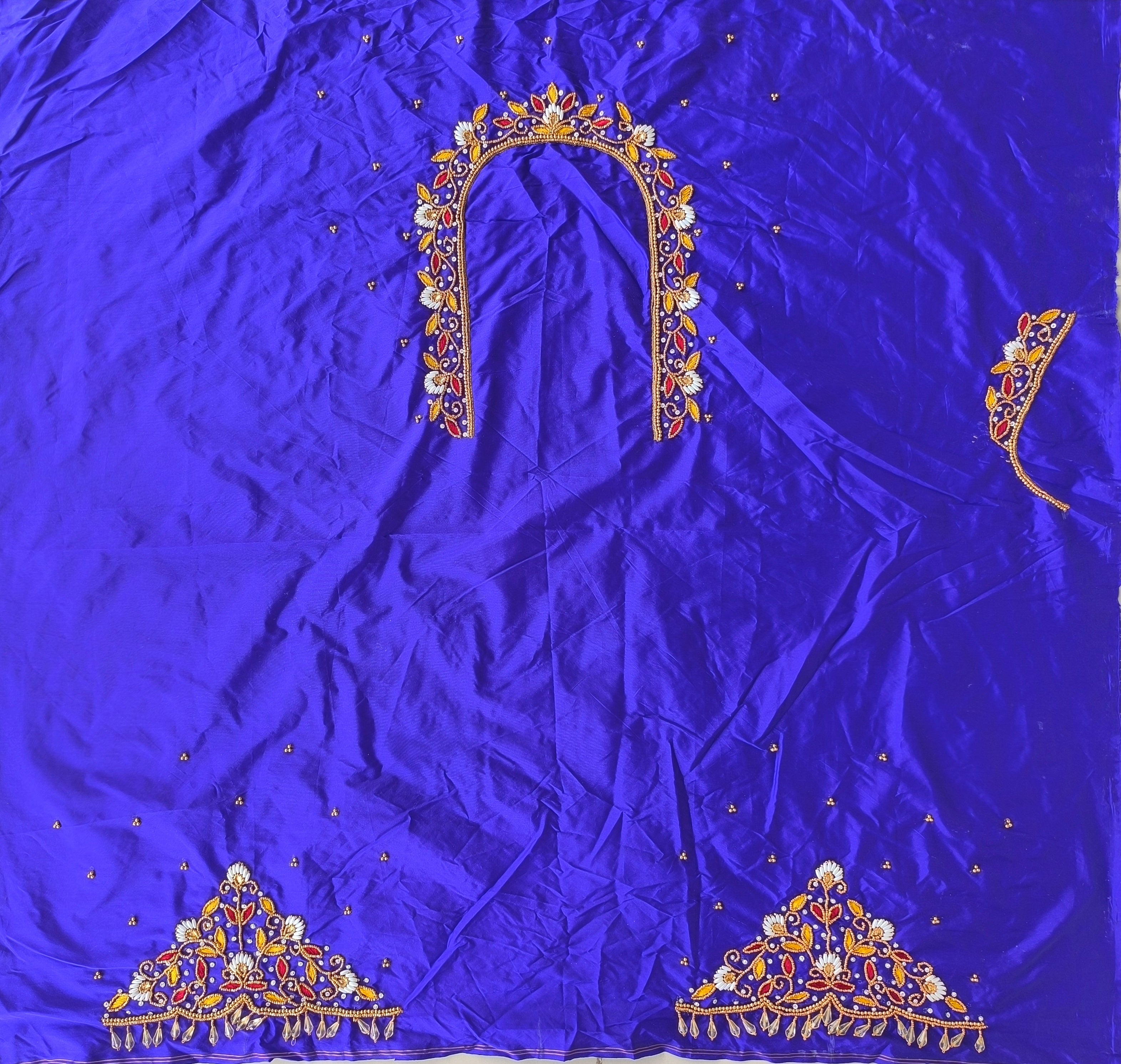 Blue Colour Maggam Work Blouse 1 MTR SILK  COTTON CLOTHBlue ColorMaggam Work BlouseNECK DEEP 10 TO 11...