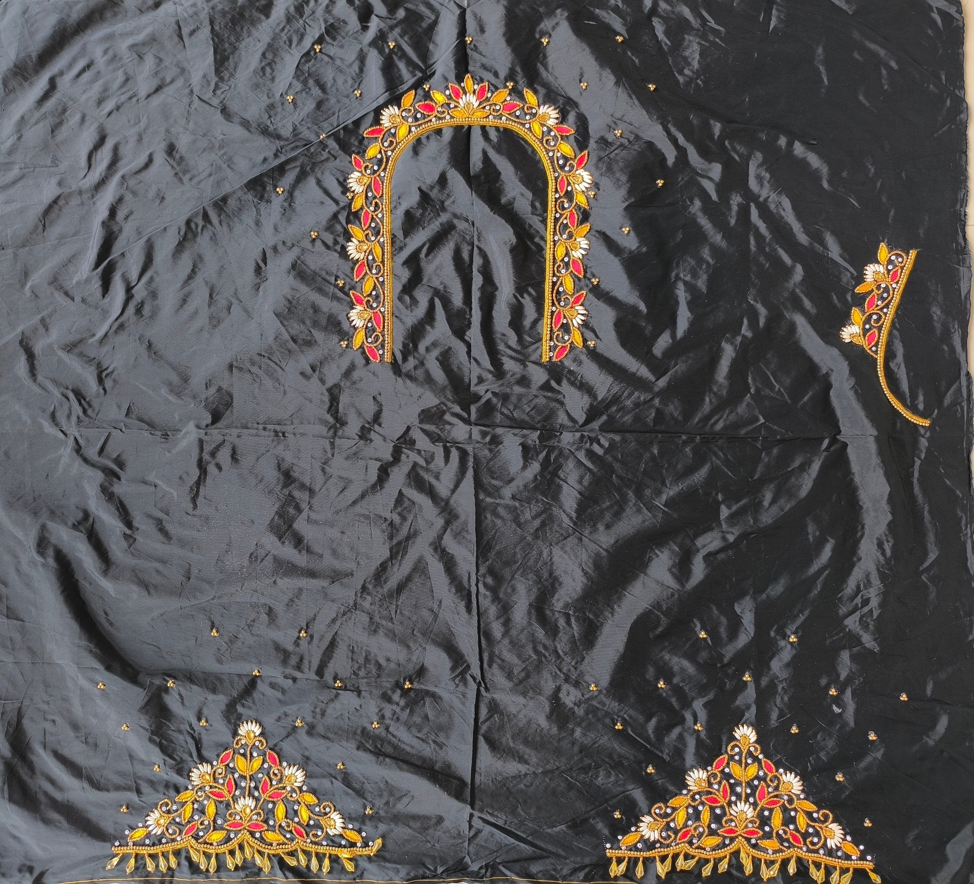 Black Colour Maggam Work Blouse 1 MTR SILK  COTTON CLOTHBlack ColorMaggam Work BlouseNECK DEEP 10 TO 11...