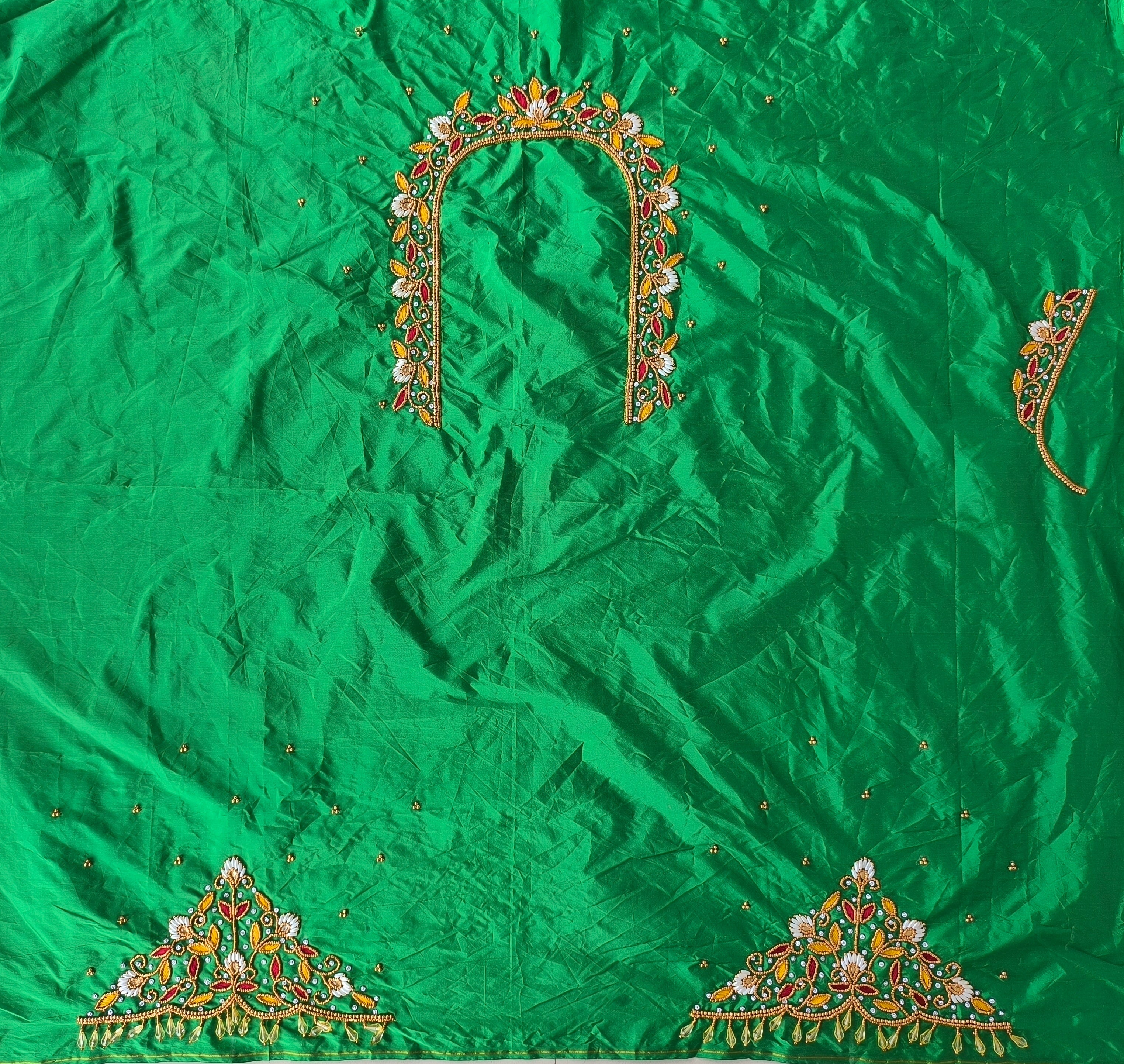 Green Colour Maggam Work Blouse 1 MTR SILK  COTTON CLOTHGreen ColorMaggam Work BlouseNECK DEEP 10 TO 11...