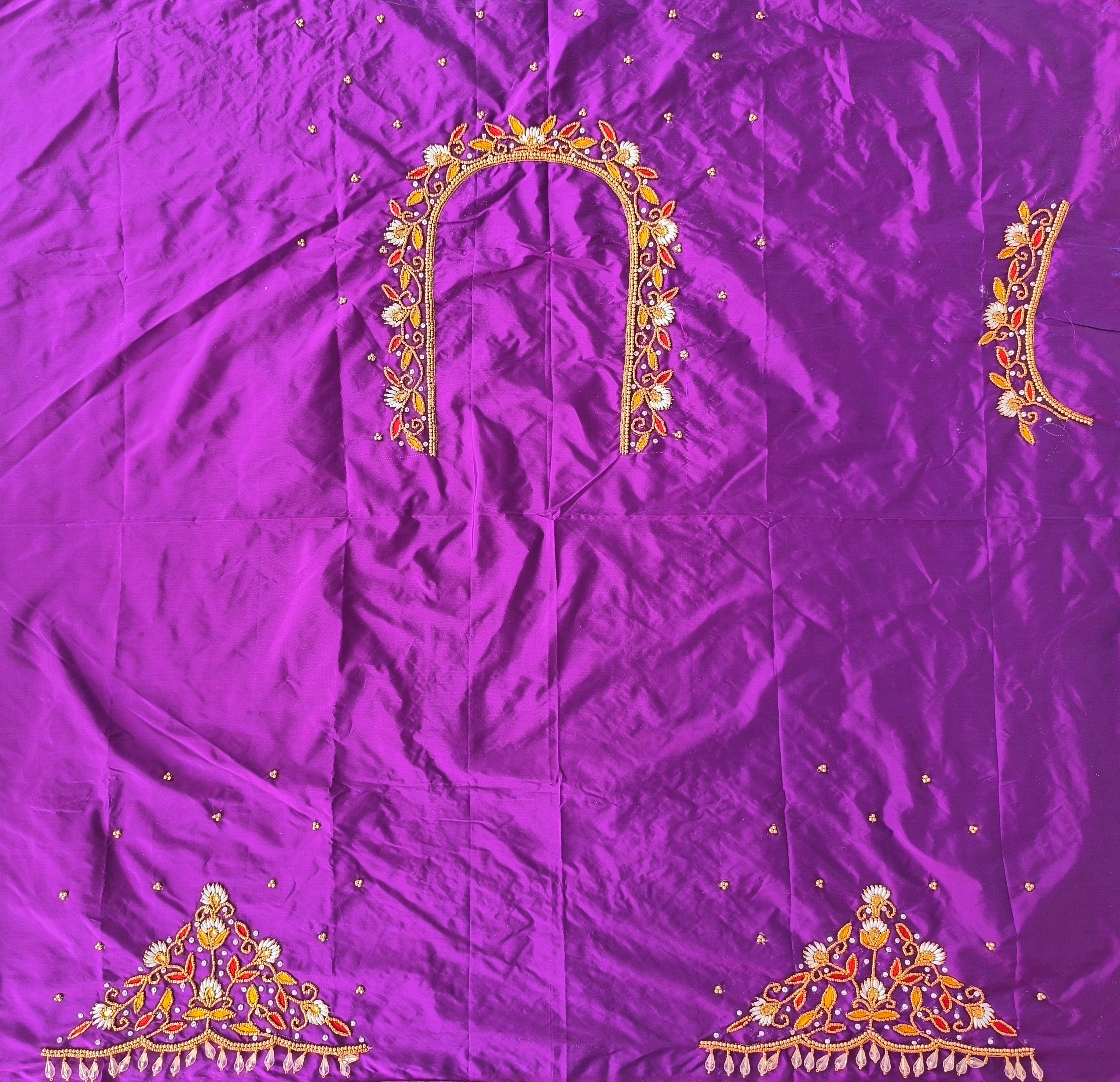 Purple Colour Maggam Work Blouse 1 MTR SILK  COTTON CLOTHPurple ColorMaggam Work BlouseNECK DEEP 10 TO 11...