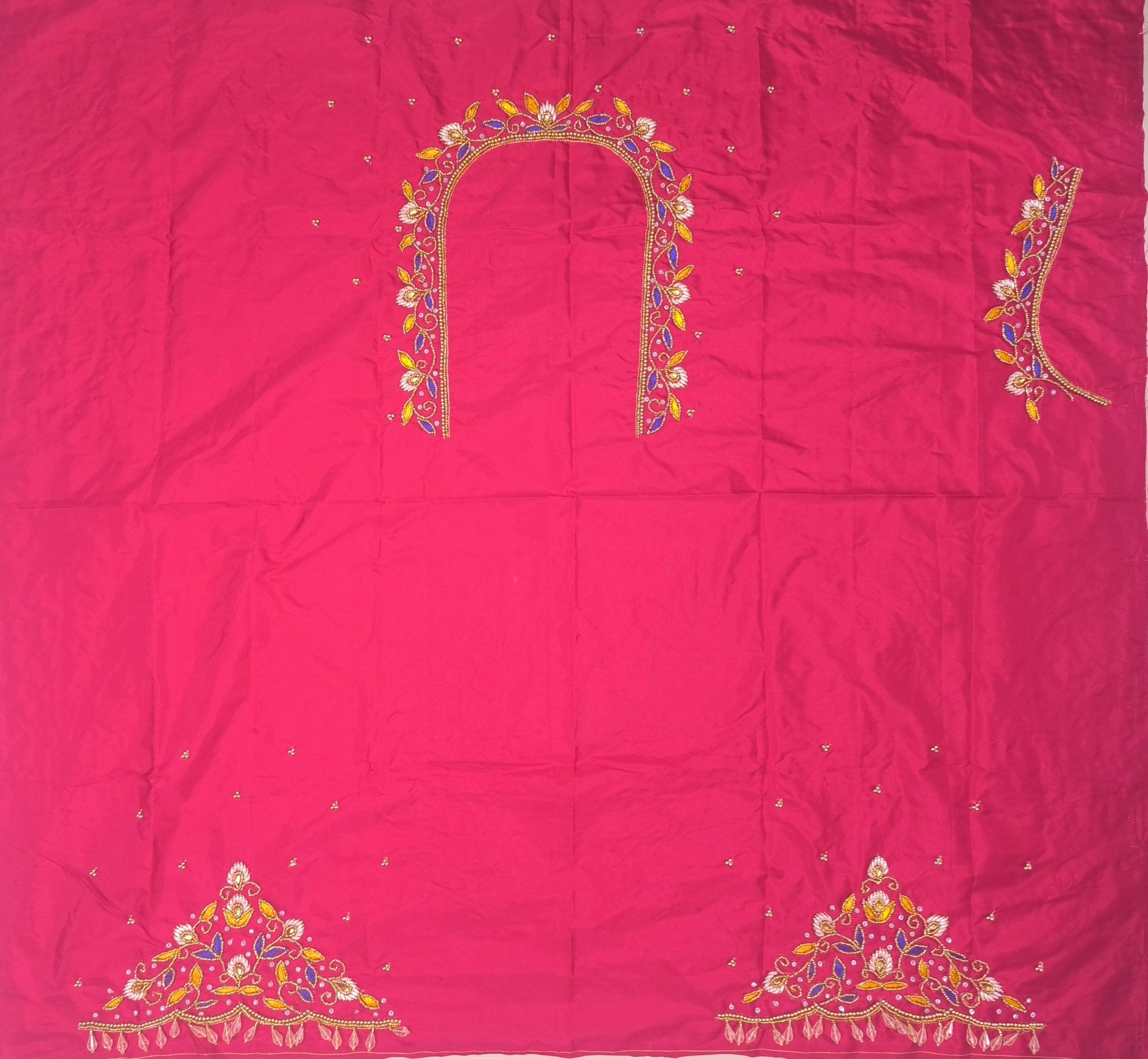 Tomato Pink Colour Maggam Work Blouse 1 MTR SILK  COTTON CLOTHTomato Pink ColorMaggam Work BlouseNECK DEEP 10...