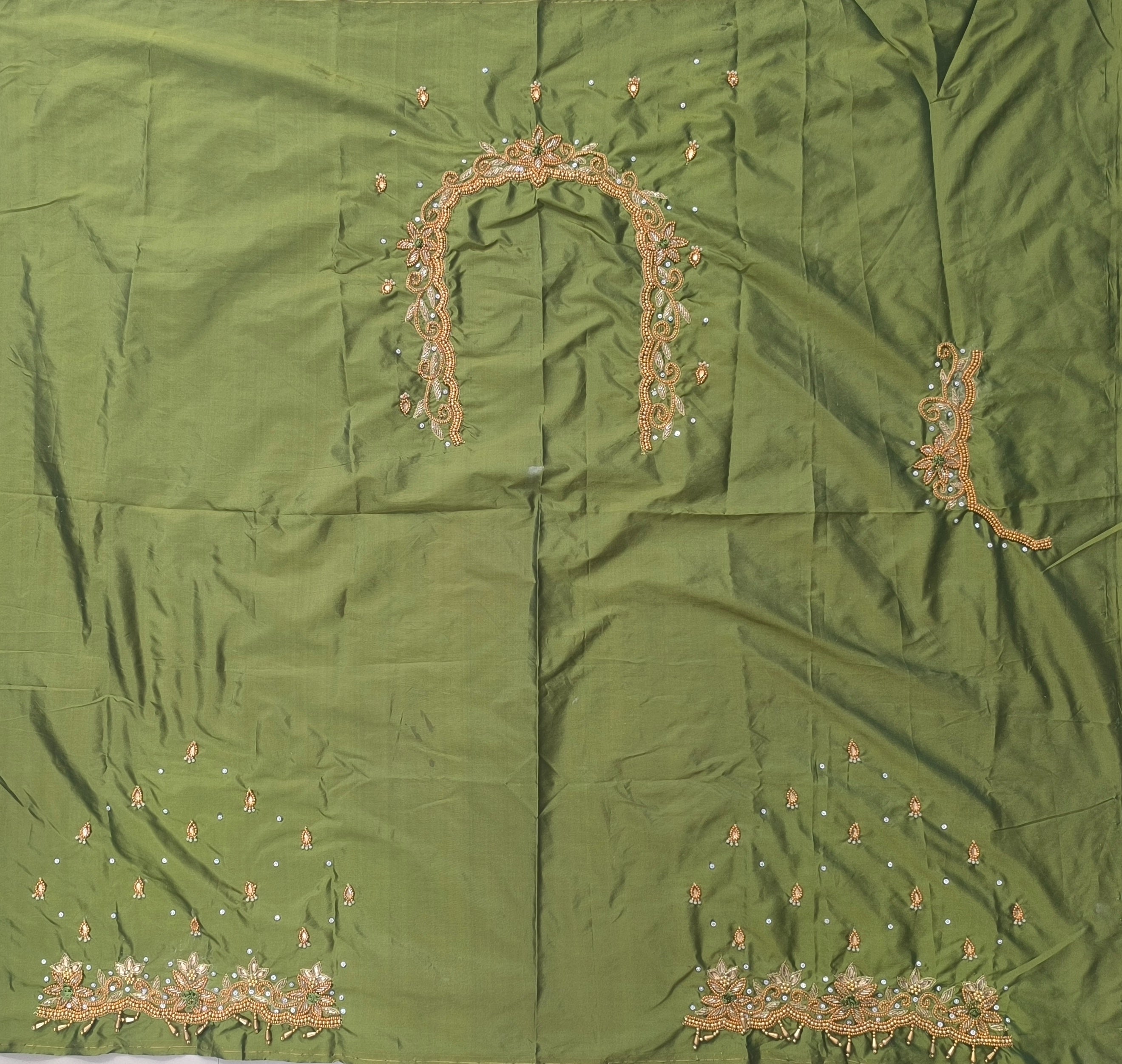 Mahendi Green Maggam Work Blouse 1 MTR SILK  COTTON CLOTHMaggam Work BlouseNECK DEEP 10 TO 11 INCHES...