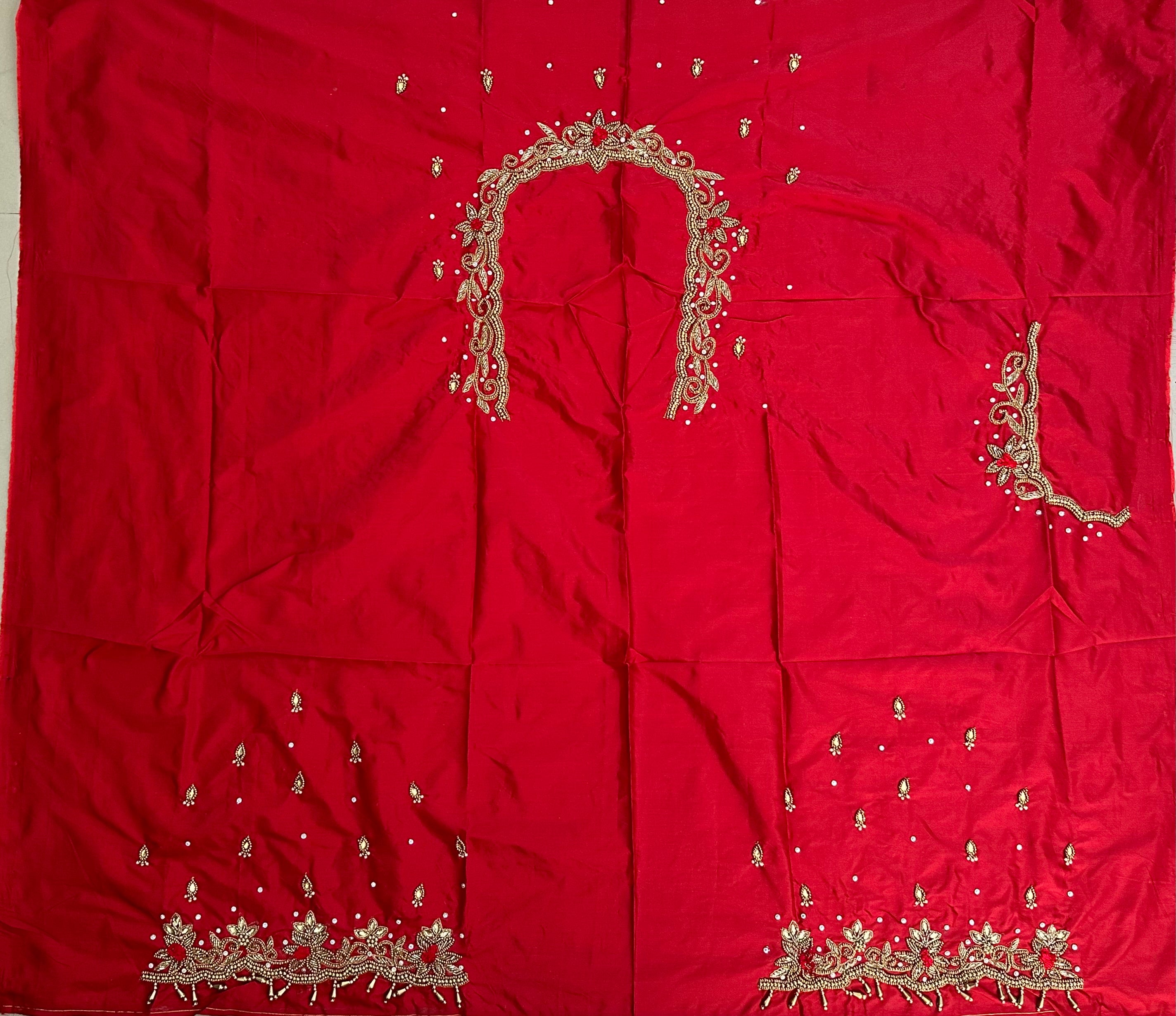 Red Colour Maggam Work Blouse 1 MTR SILK  COTTON CLOTHRed  ColorMaggam Work BlouseNECK DEEP 10 TO 11...