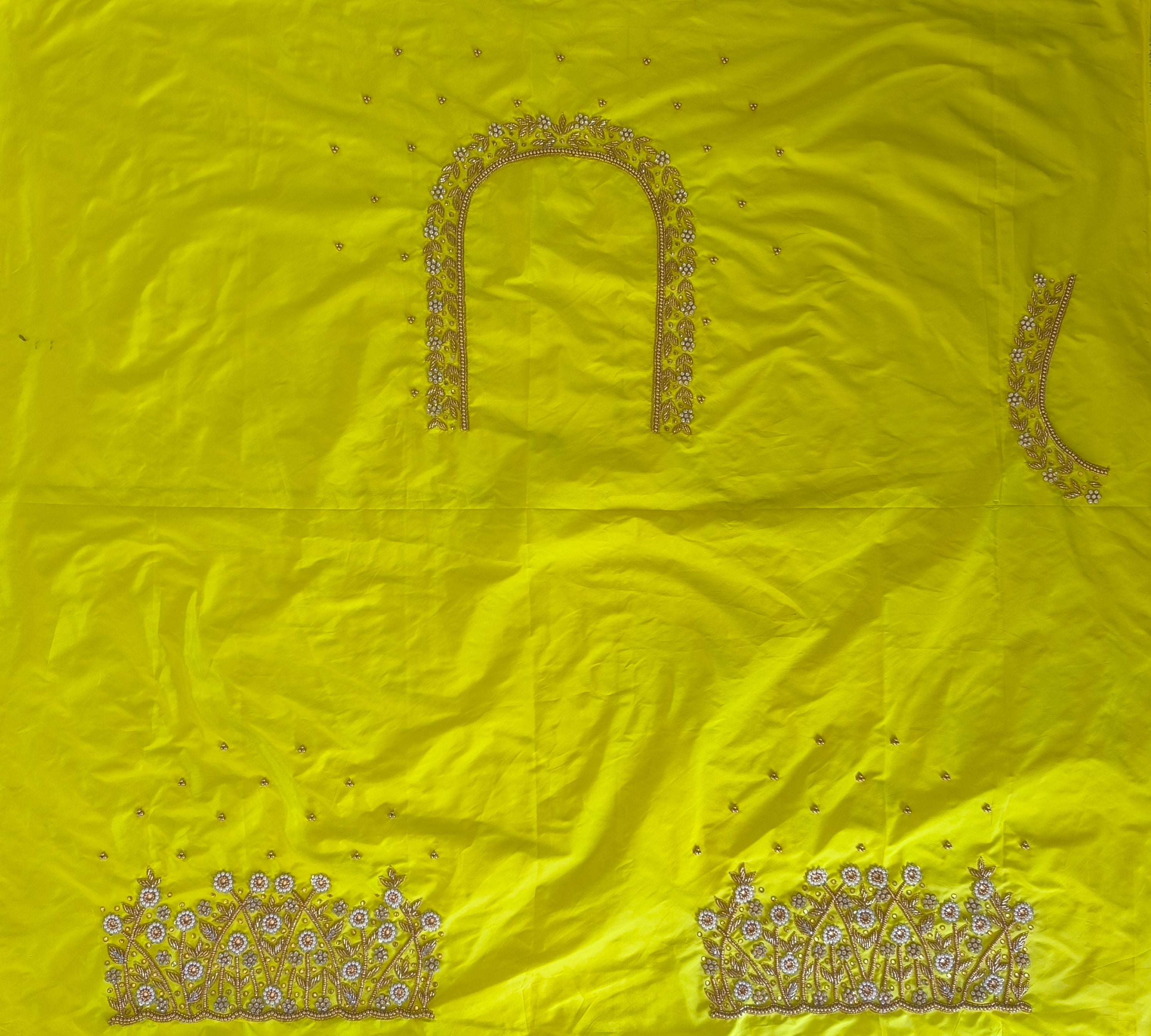Lemon Yellow Colour Maggam Work Blouse 1 MTR SILK  COTTON CLOTH Maggam Work BlouseNECK DEEP 10 TO...