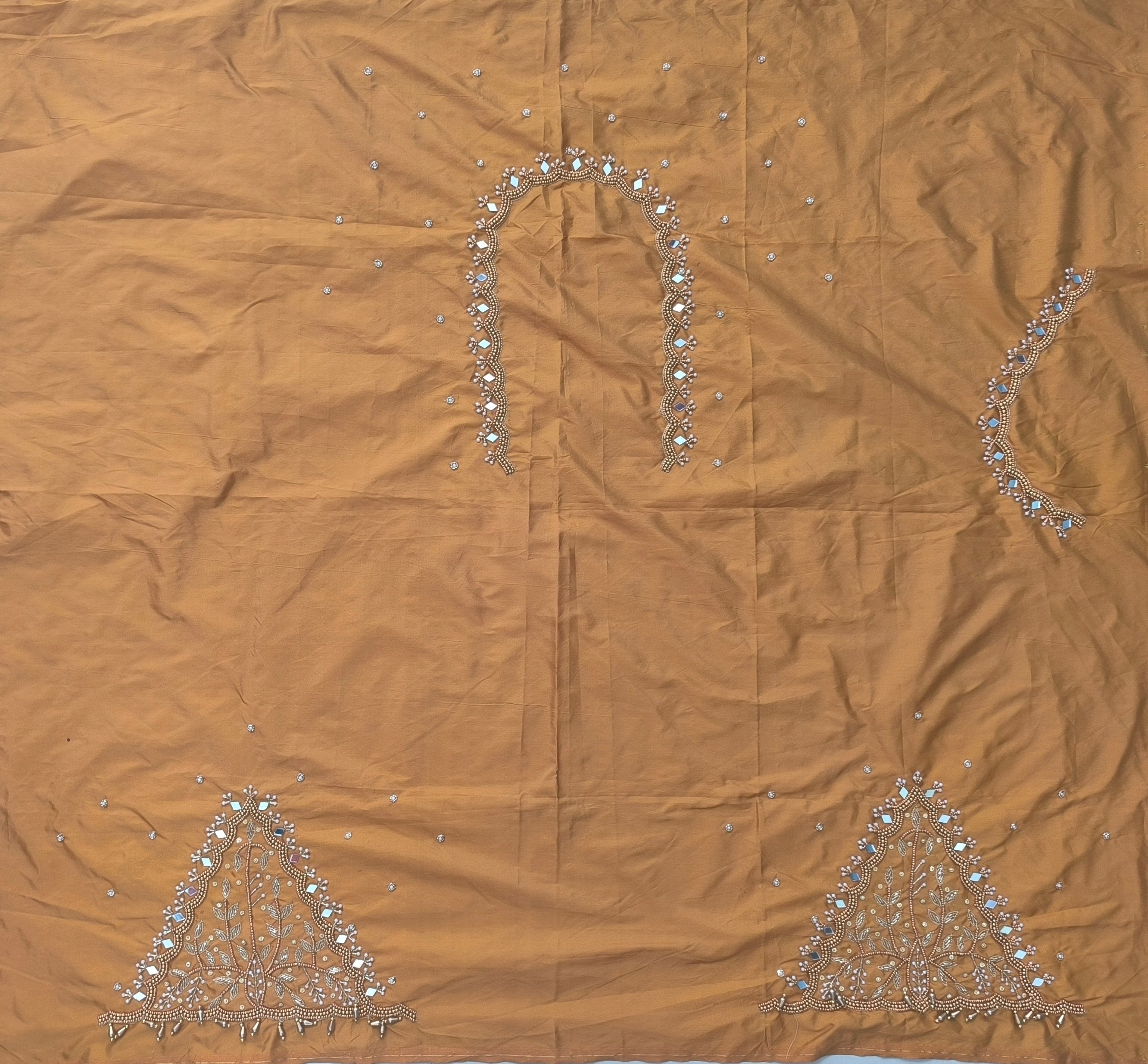 Mustard Yellow (Gandham) Colour Maggam Work Blouse 1 MTR SILK  COTTON CLOTHMaggam Work BlouseNECK DEEP 10 TO...