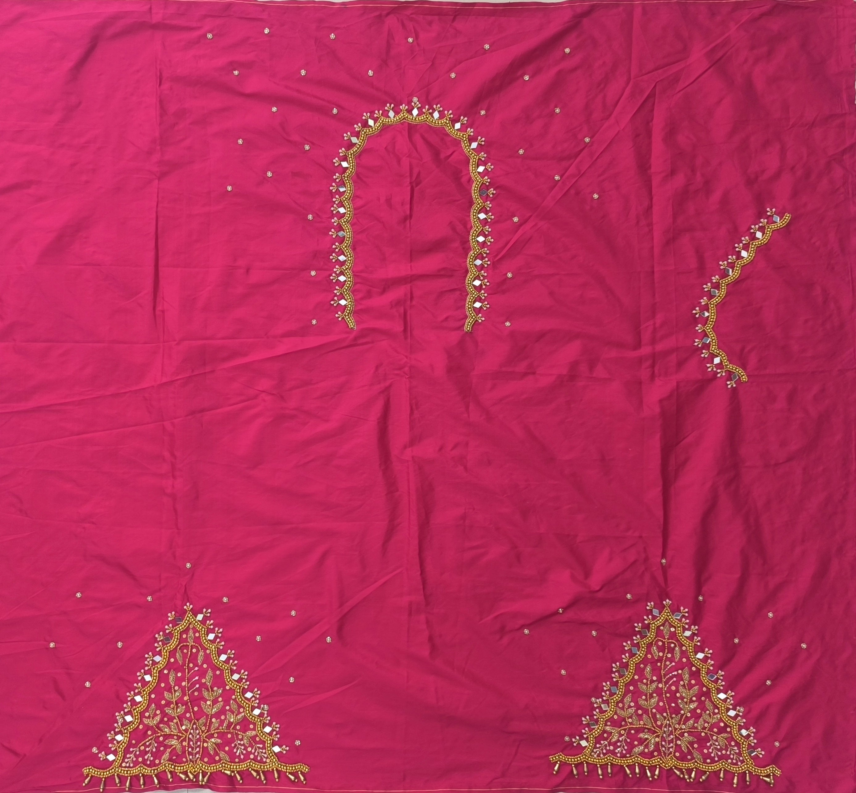 Tomato Pink Colour Maggam Work Blouse 1 MTR SILK  COTTON CLOTHMaggam Work BlouseNECK DEEP 10 TO 11...