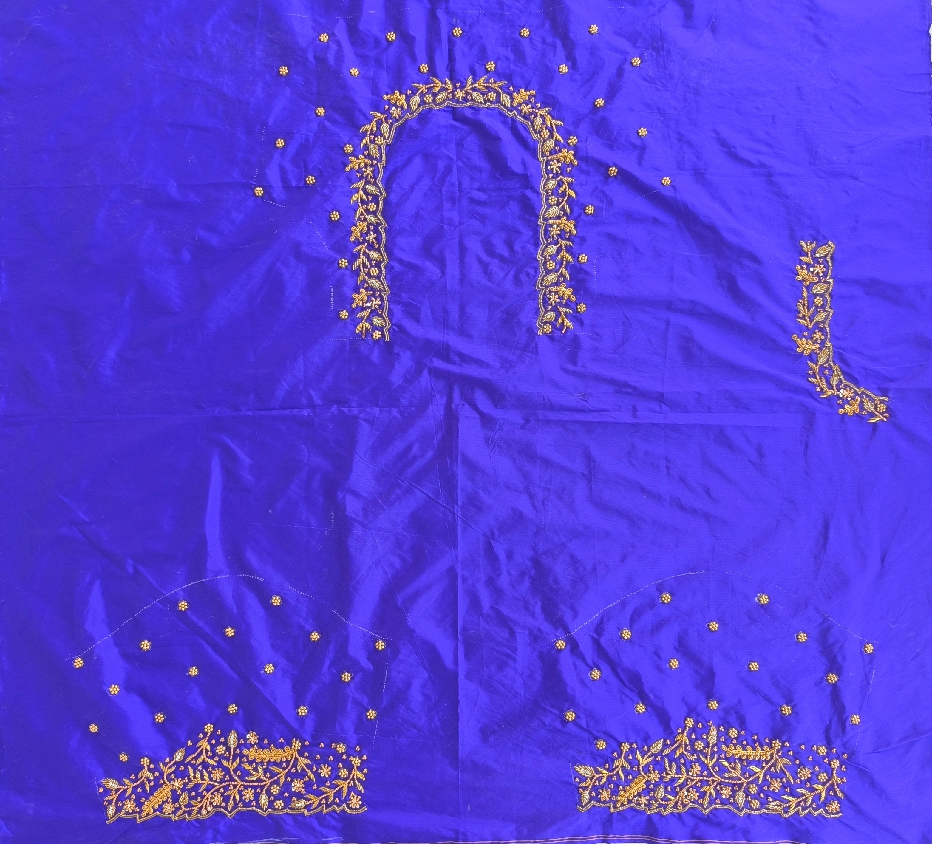 Ink Blue Colour Maggam Work Blouse 1 MTR SILK  COTTON CLOTHMaggam Work BlouseNECK DEEP 10 TO 11...