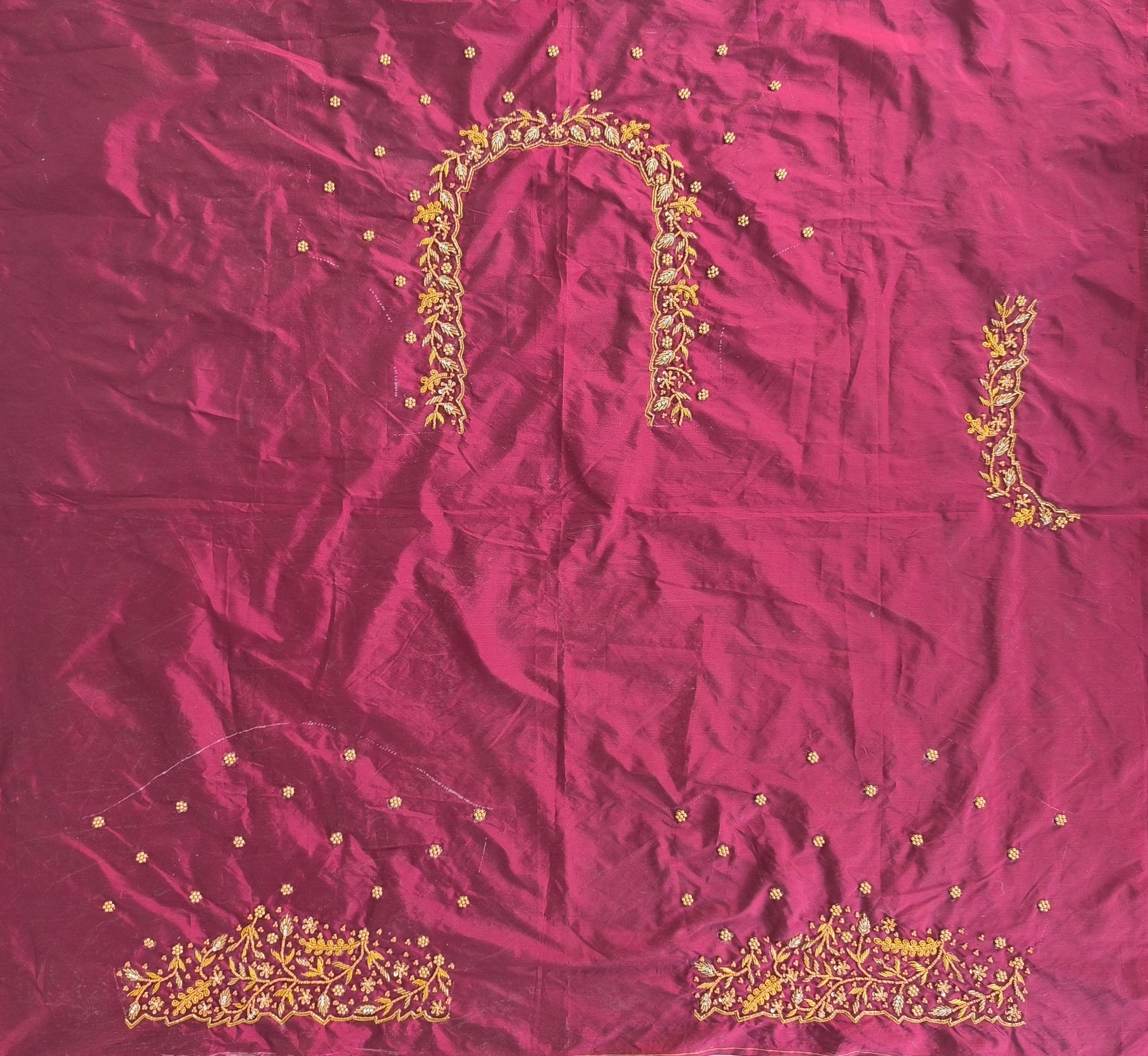 Maroon Colour Maggam Work Blouse 1 MTR SILK  COTTON CLOTHMaggam Work BlouseNECK DEEP 10 TO 11 INCHES...