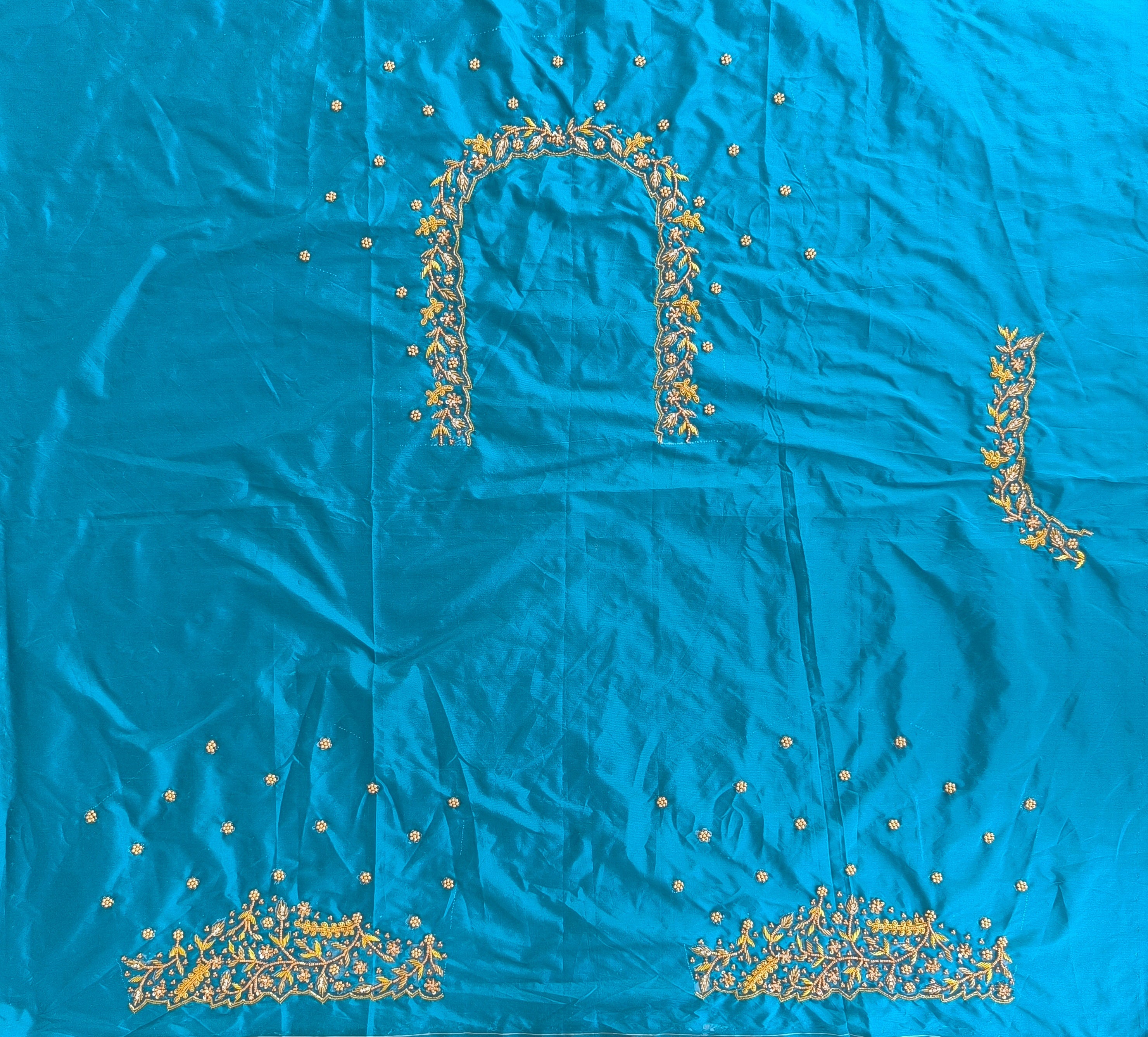 Rama Green Colour Maggam Work Blouse 1 MTR SILK  COTTON CLOTHMaggam Work BlouseNECK DEEP 10 TO 11...