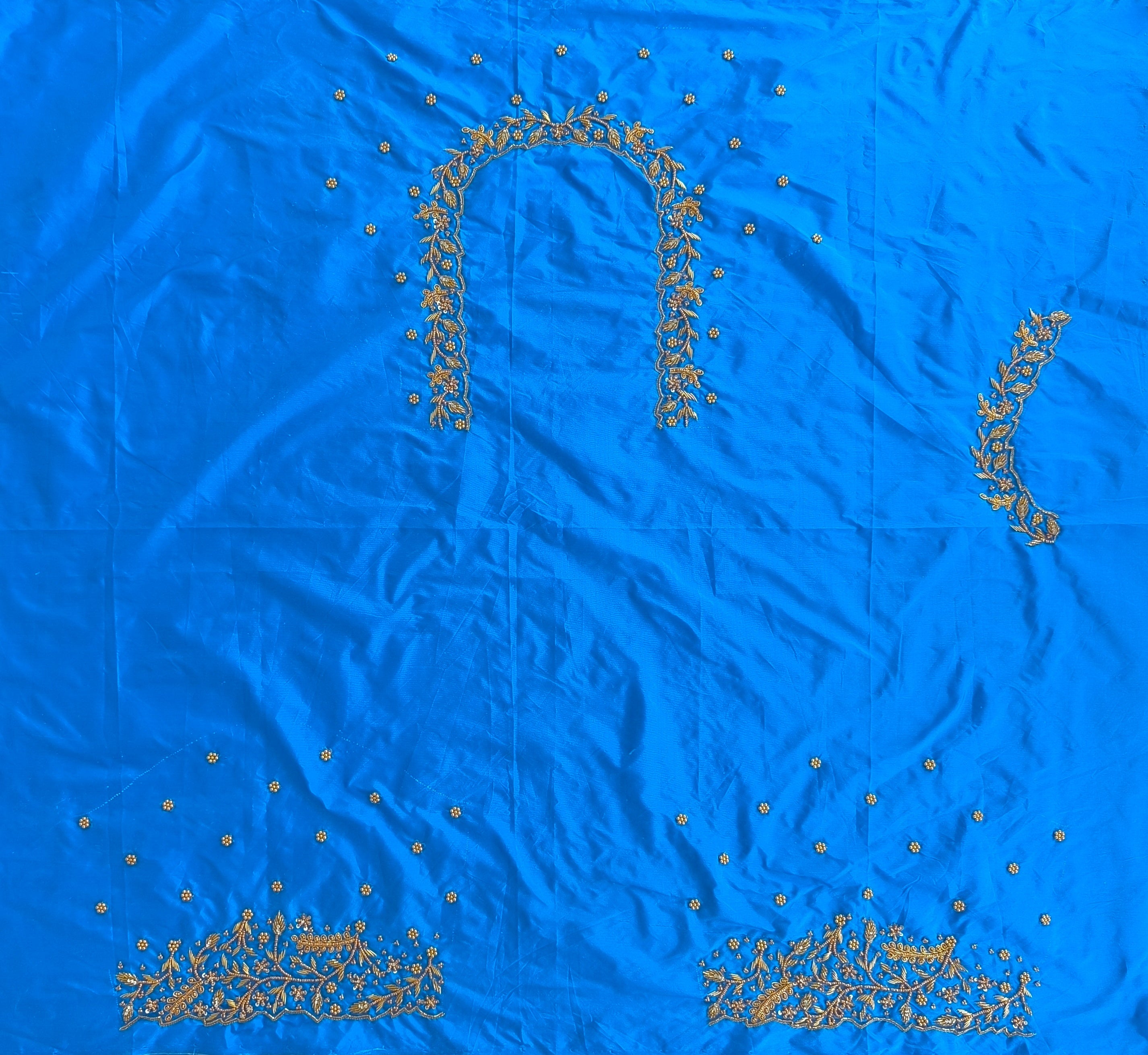 Sky Blue Colour Maggam Work Blouse 1 MTR SILK  COTTON CLOTHMaggam Work BlouseNECK DEEP 10 TO 11...