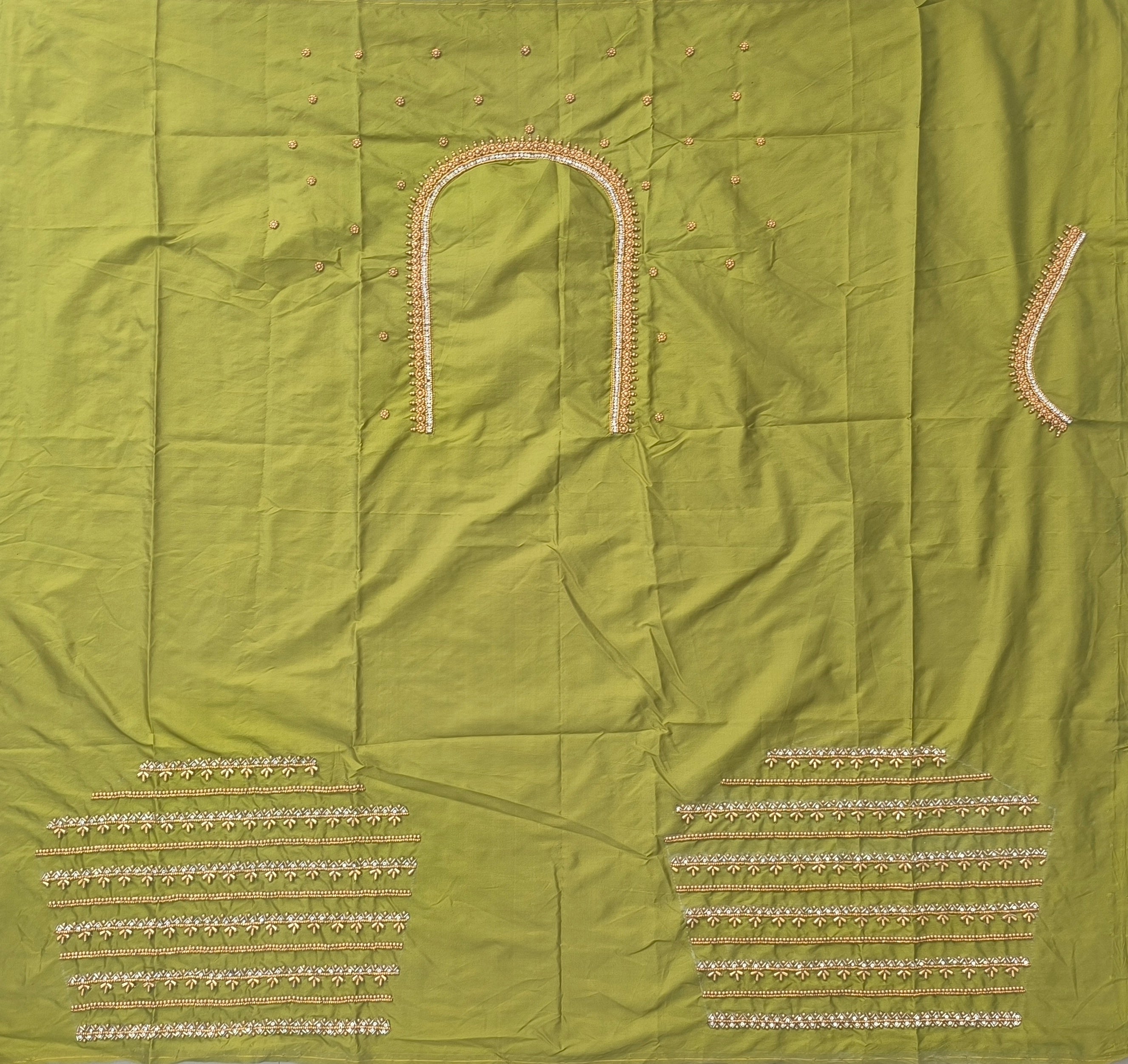 Mahendi Colour Maggam Work Blouse 1 MTR SILK  COTTON CLOTHMaggam Work BlouseNECK DEEP 10 TO 11 INCHES...