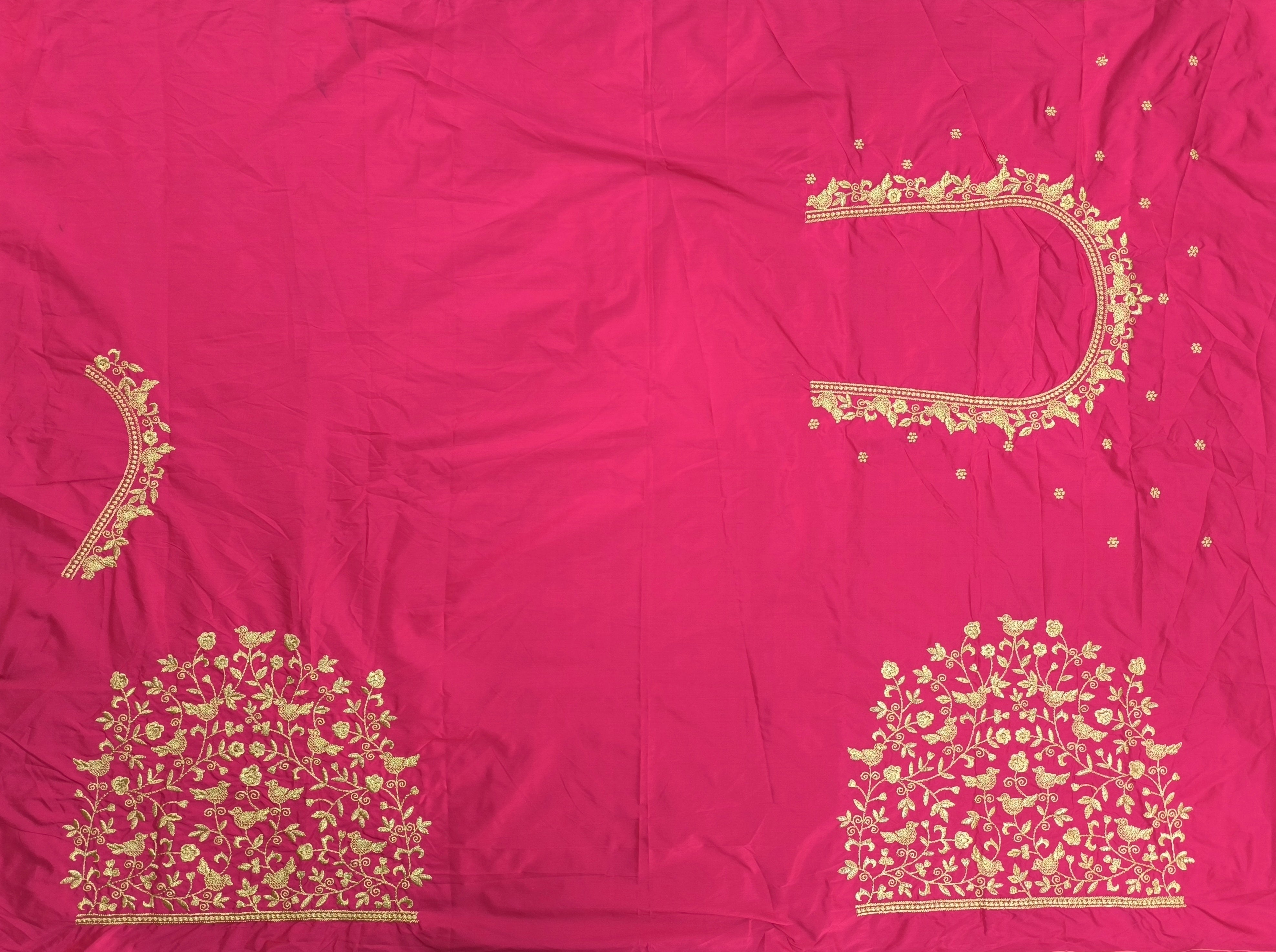 Elevate your ethnic wardrobe with this stunning Pink Colour Computer Work Blouse, adorned with intricate floral patterns and elegant gold threadwork. Perfectly crafted, this blouse features: